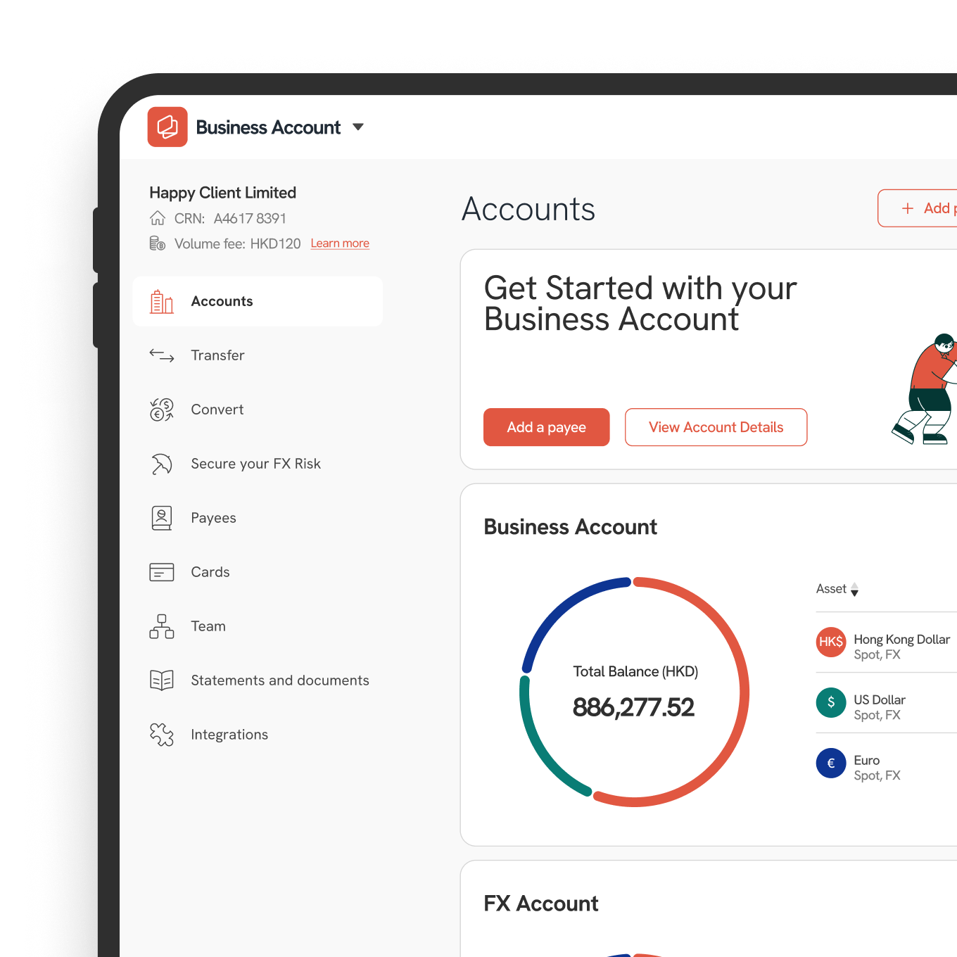 As a payment service provider in Hong Kong, Statrys offers multi-currency business accounts that let you hold, send, and receive money in 11 major currencies: HKD, SGD, USD, EUR, GBP, AUD, CAD, JPY, RMB, CHF, and NZD. You can receive and send international payments via the SWIFT network and track your payments in real-time.